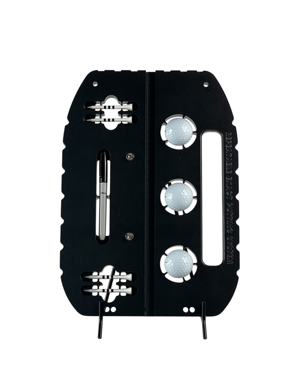 These are precisely placed at 1.5" increments to allow players to experiment with different distances from the ball under a controlled environment. Once the proper ball position has been located, you will use the indicator to train from this location each time you practice.